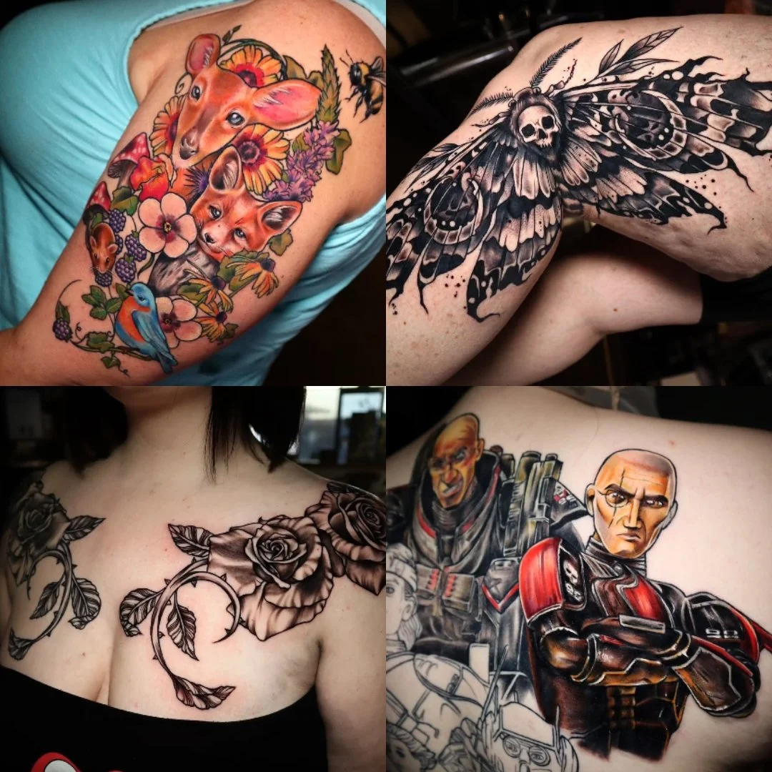 - Subject matter (portraits, blackwork, bugs, florals, etc.)